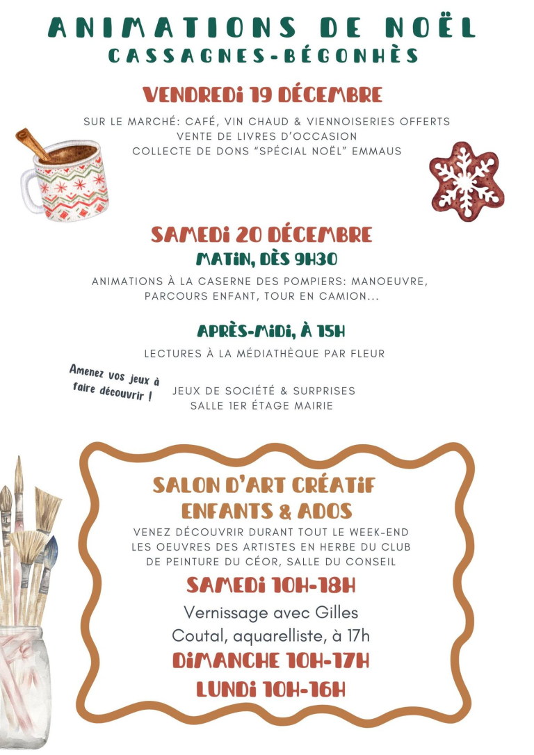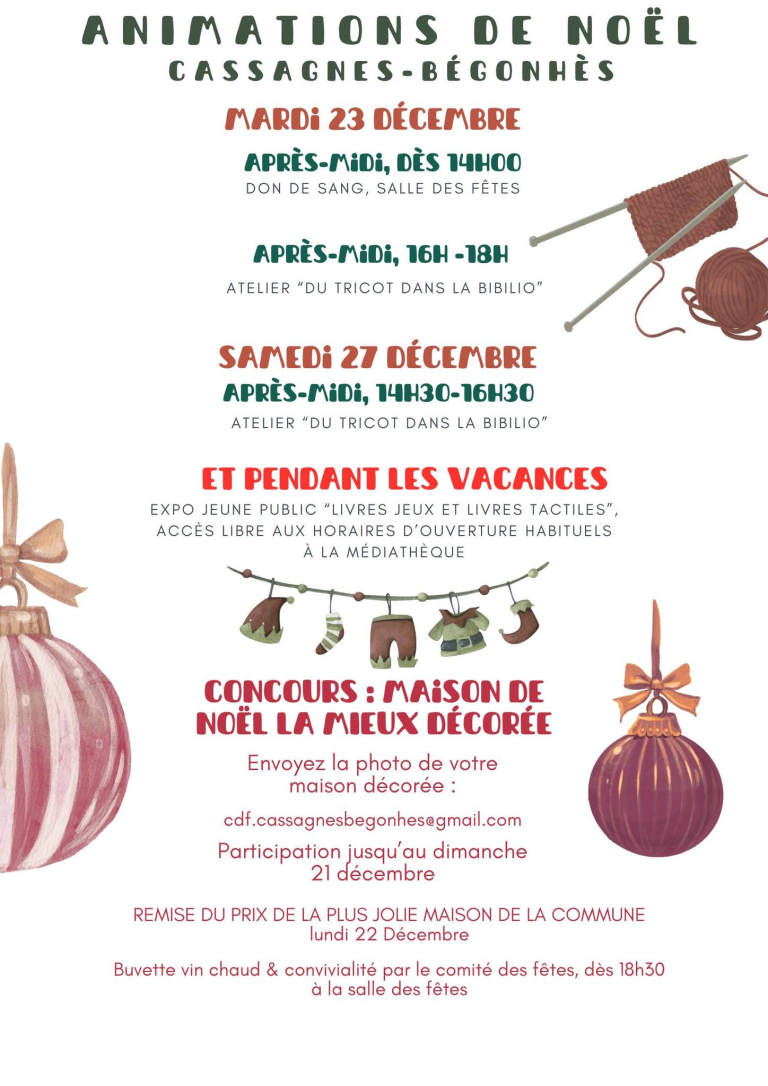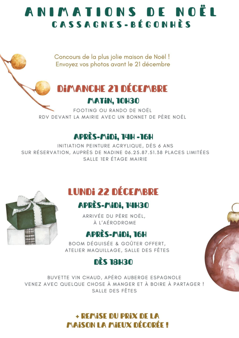 Les associations* du village accompagnées par la municipalité sont heureuses de vous présenter le programme des animations de Noël 2025 qui commencera dès vendredi 19 décembre et se poursuivra durant les vacances !